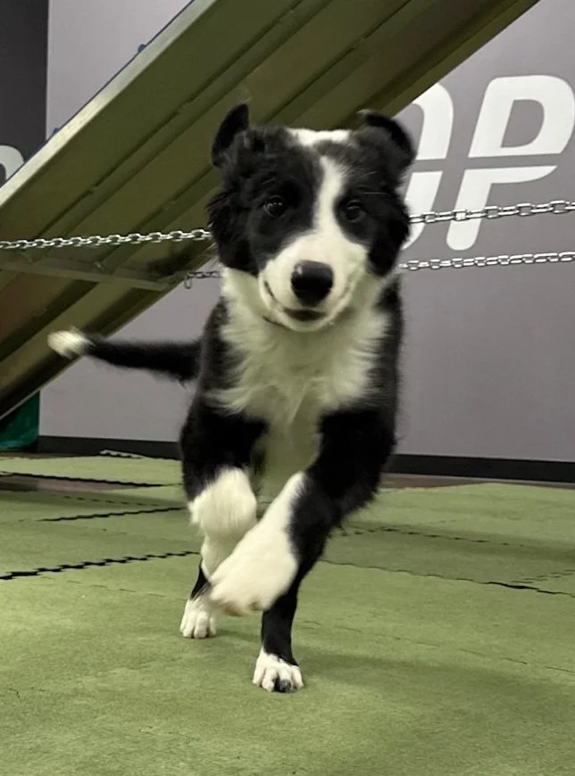 Kaladin (Kal) is a purebred Border Collie. He is named after a book series, Stormlight Archives by Brandon Sanderson. While he is still developing into his adult self, Kal is the most goofy Border Collie you will ever meet. He loves to work, but he also loves to fool around and make people laugh. He has a massive overbite and heart. He loves giving people hugs, tossing toys for himself, galloping around the house, and watching TV. Once his mom gets approval from the veterinary dentist, he will hopefully be on his journey to becoming a sports dog.